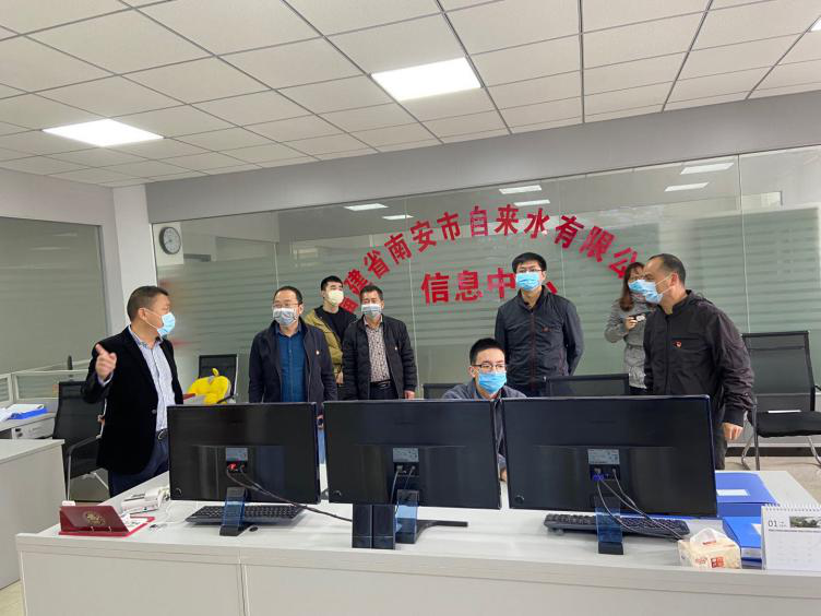 檢查組到公司信息中心查看美林水廠及取水口的實時監(jiān)控及相關(guān)生產(chǎn)數(shù)據(jù),并重點對公司疫情防控的一系列措施、應(yīng)急物資的儲備情況、水廠供水穩(wěn)定情況、水質(zhì)檢測情況等進行詳細地了解。