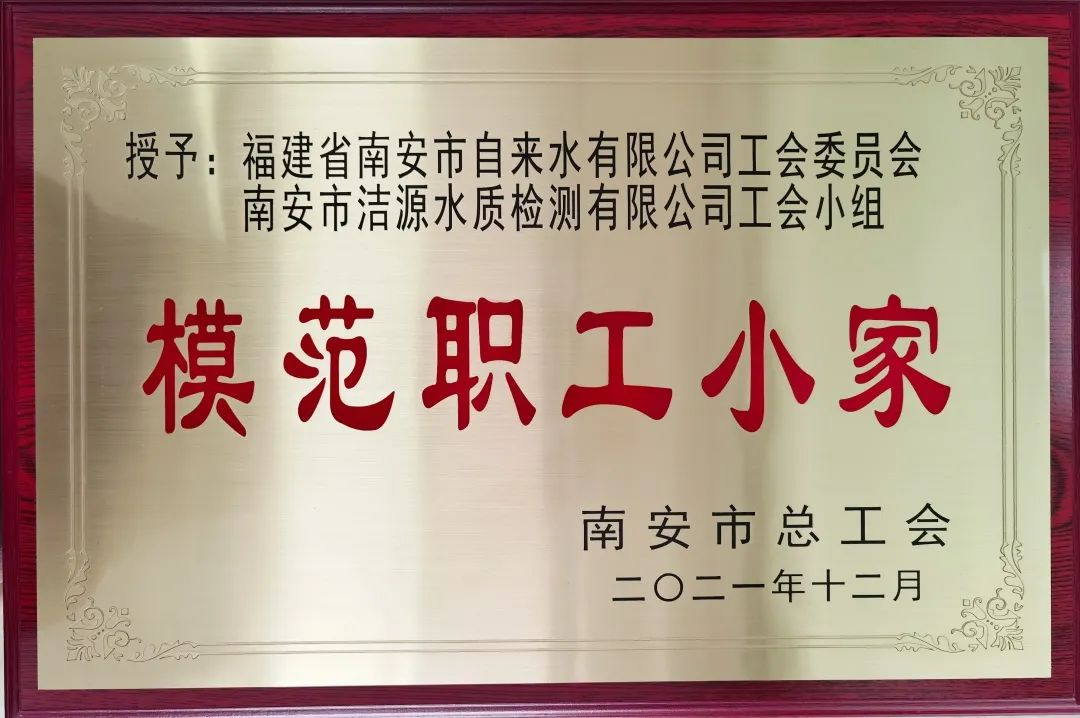南安市總工會(huì)近日對(duì)2021年度南安市模范職工之家、模范職工小家進(jìn)行表彰,其中南安市潔源水質(zhì)檢測(cè)有限公司工會(huì)小組被授予“南安市模范職工小家”榮譽(yù)稱號(hào)。